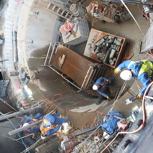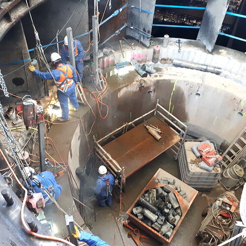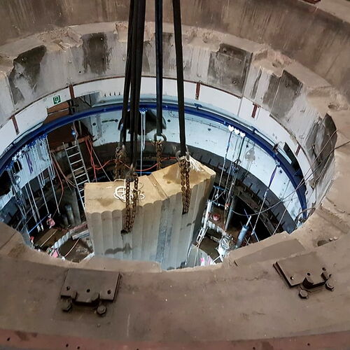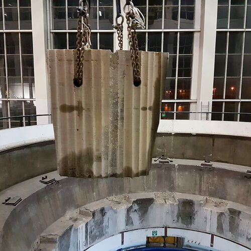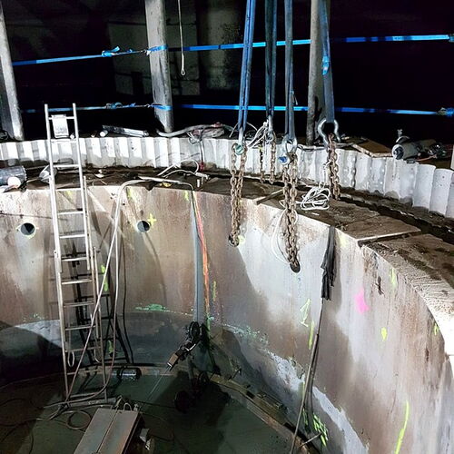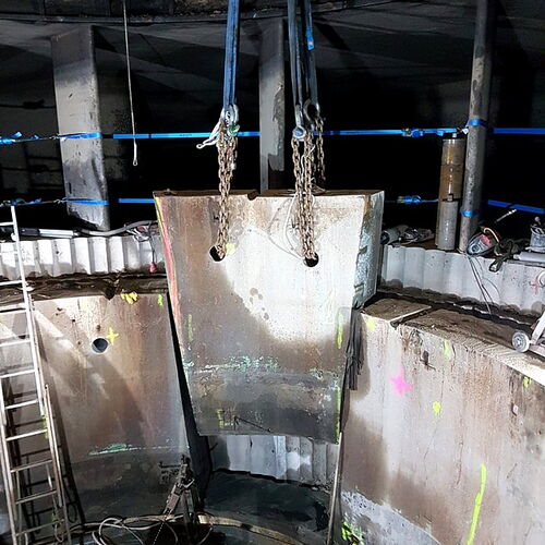 Bei Bedarf übernehmen wir auch Projekte im Ausland. So wurde im Wasserkraftwerk in Lüttich, Belgien, der Stahlbetonmantel einer Turbine erweitert. Die erforderlichen Trennarbeiten am Stahlbeton wurden durch Betonbohren und den Einsatz des Seiltrennverfahrens realisiert.