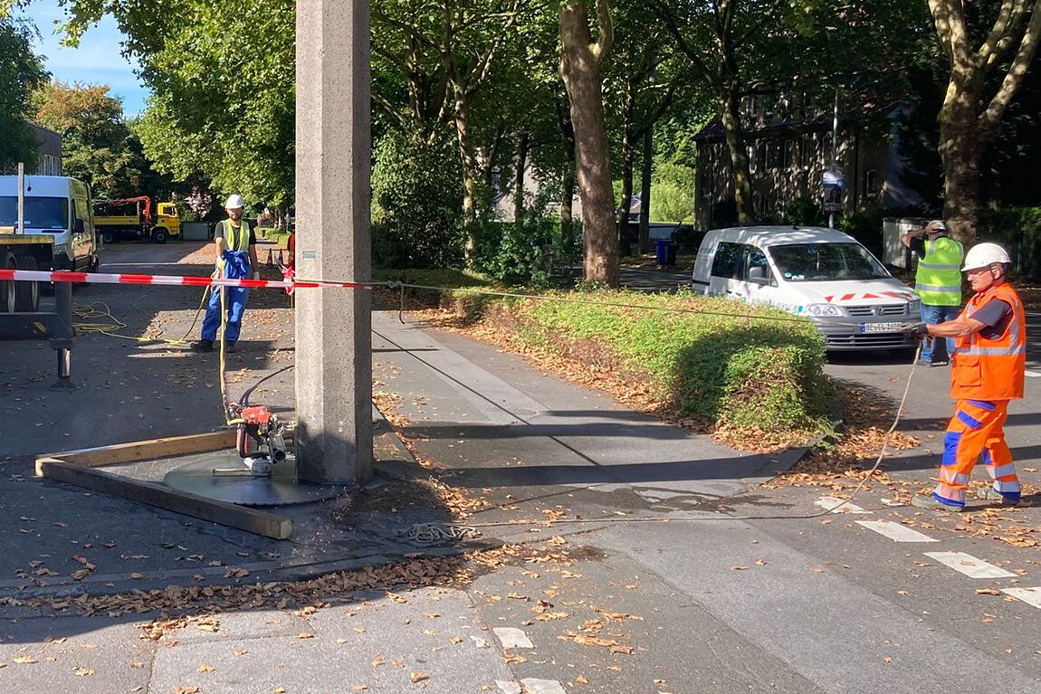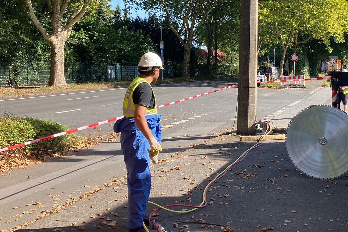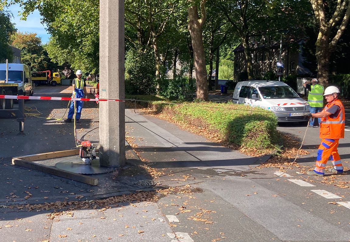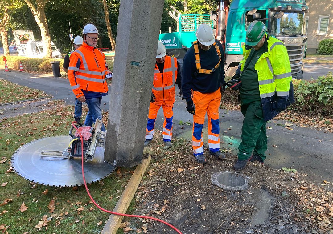 In Gladbeck im Ruhrgebiet haben wir alte, nicht mehr benötigte Oberleitungsmaste aus Stahlbeton ebenerdig mit der Wandsäge abgetrennt. Weitere Städte im gesamten Ruhrgebiet werden in den nächsten Schritten folgen.