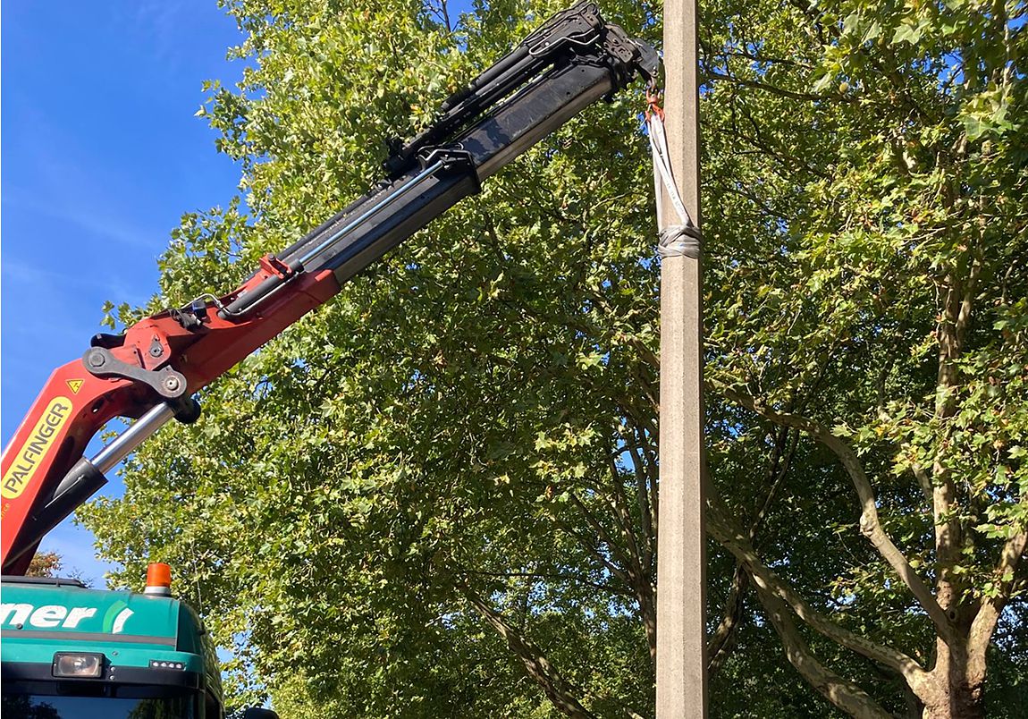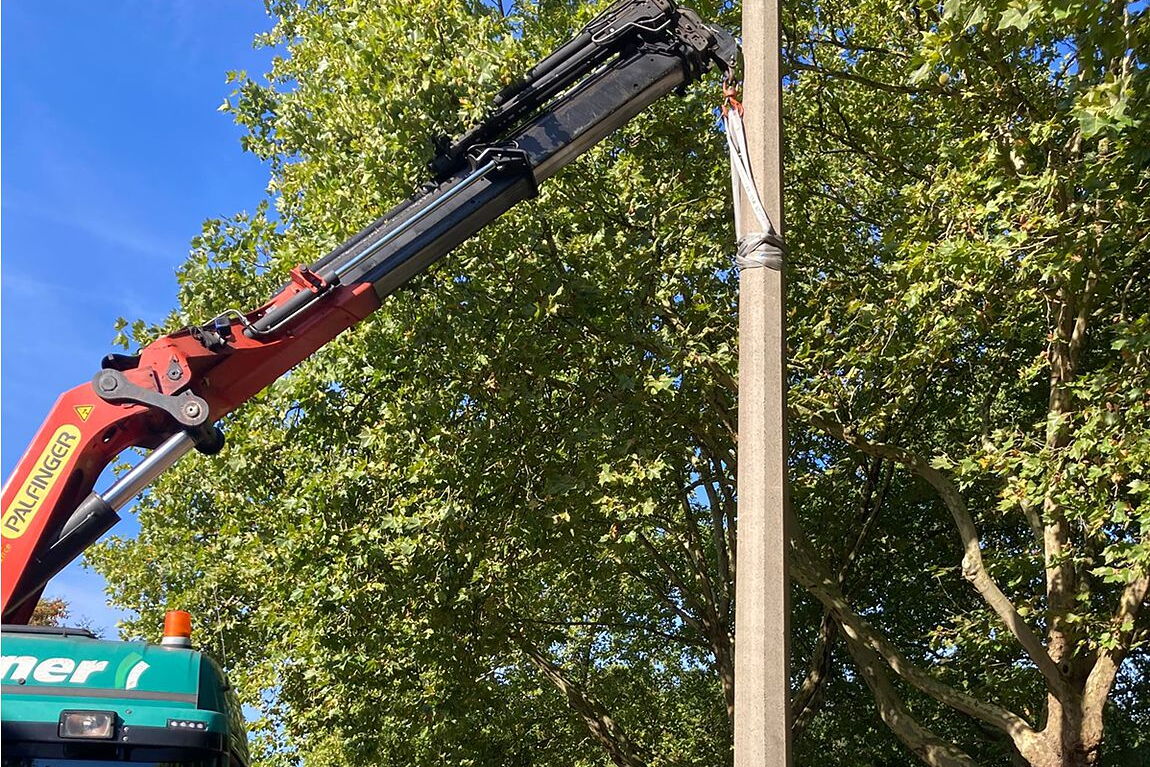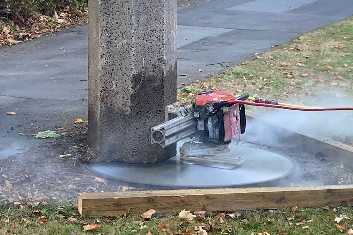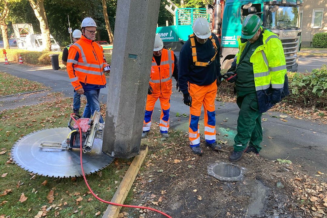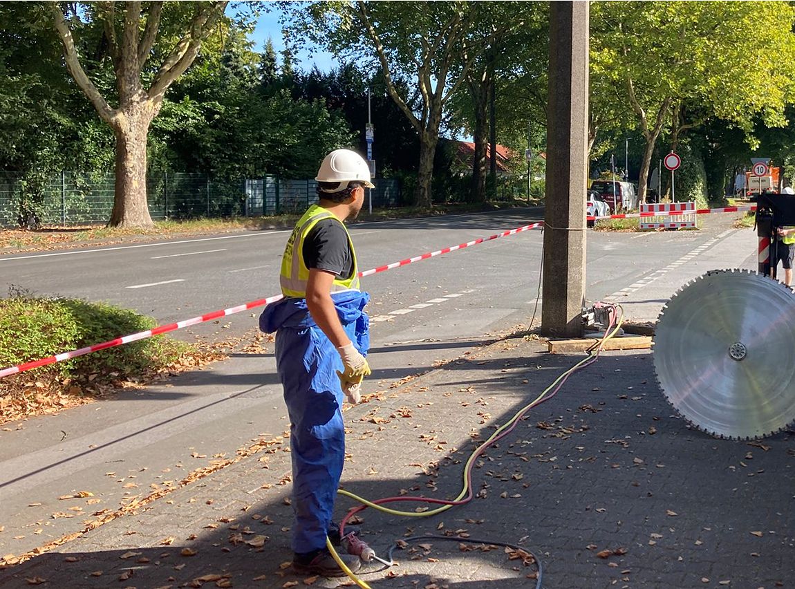 In Gladbeck im Ruhrgebiet haben wir alte, nicht mehr benötigte Oberleitungsmaste aus Stahlbeton ebenerdig mit der Wandsäge abgetrennt. Weitere Städte im gesamten Ruhrgebiet werden in den nächsten Schritten folgen.