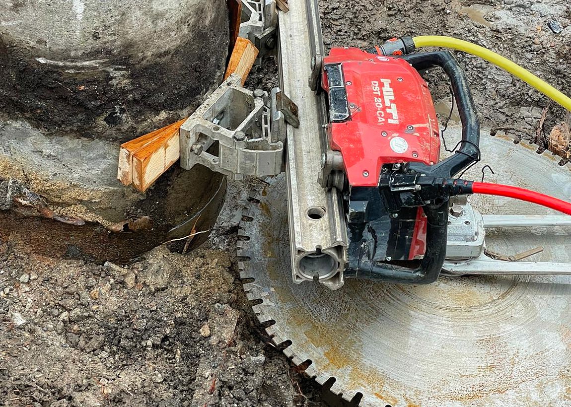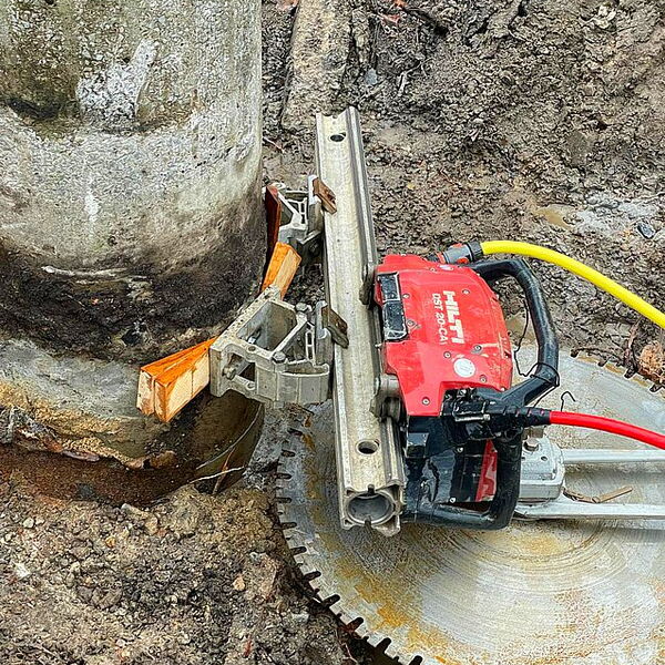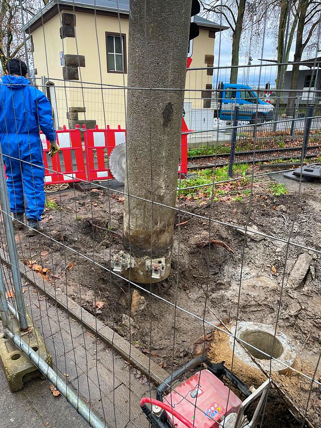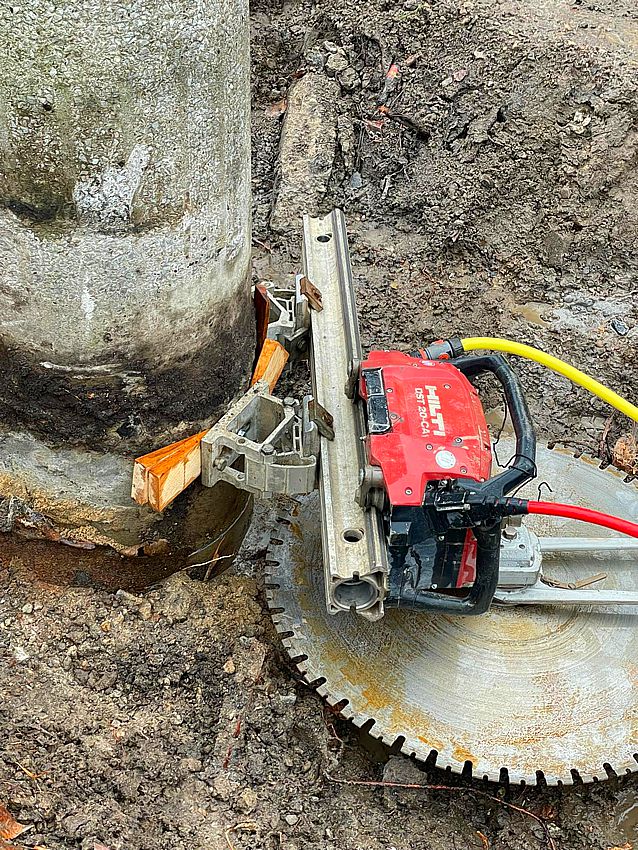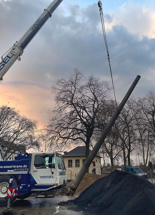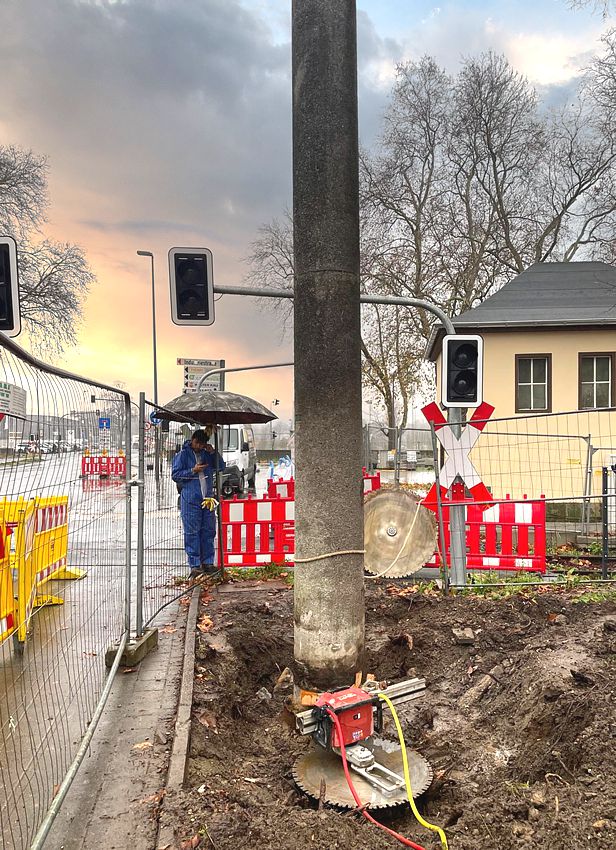 In Neuss im Ruhrgebiet haben wir alte, nicht mehr benötigte Oberleitungsmaste aus Stahlbeton ebenerdig mit der Wandsäge abgetrennt. Weitere Städte im gesamten Ruhrgebiet werden in den nächsten Schritten folgen.
